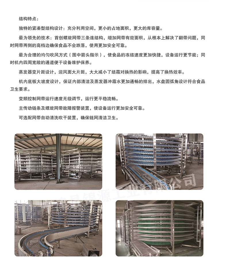 3.我廠可根據(jù)用戶的產(chǎn)量身訂做,打造經(jīng)濟實惠的非標螺旋塔,可大大提高生產(chǎn)效率。螺旋冷卻塔選用不銹鋼螺旋網(wǎng)帶載體,網(wǎng)帶寬度300-900mm,層間距及層數(shù)依產(chǎn)量定制,冷卻時間20-120分鐘.冷卻產(chǎn)量大,可直接冷卻漢堡,吐司,甜面包,也可帶盤冷卻月餅,奶香包等.定制靈活,依據(jù)場地和產(chǎn)能設計直徑和網(wǎng)帶.單塔為上進下出或下進上出。